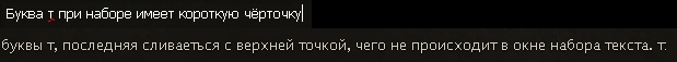 При постановке : после буквы т, последняя сливаеться с верхней точкой, чего не происходит в окне набора текста. т: