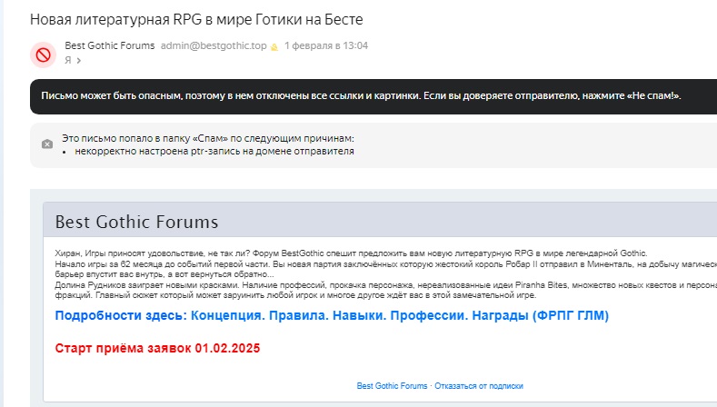Во-вторых, письмо от "Бестготики" попало в спам.