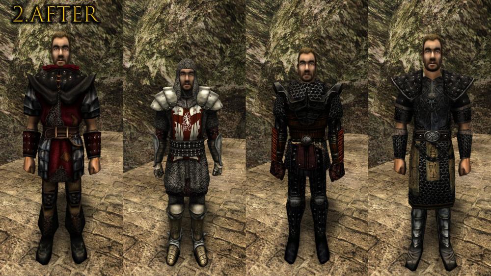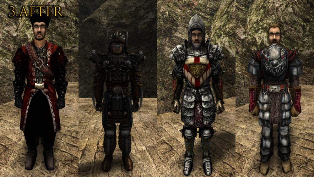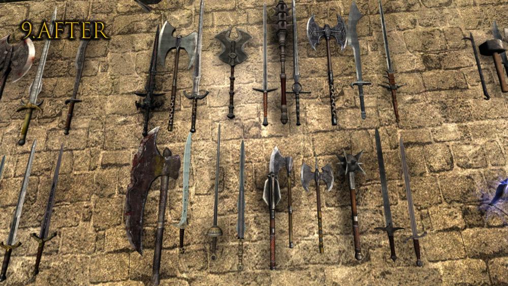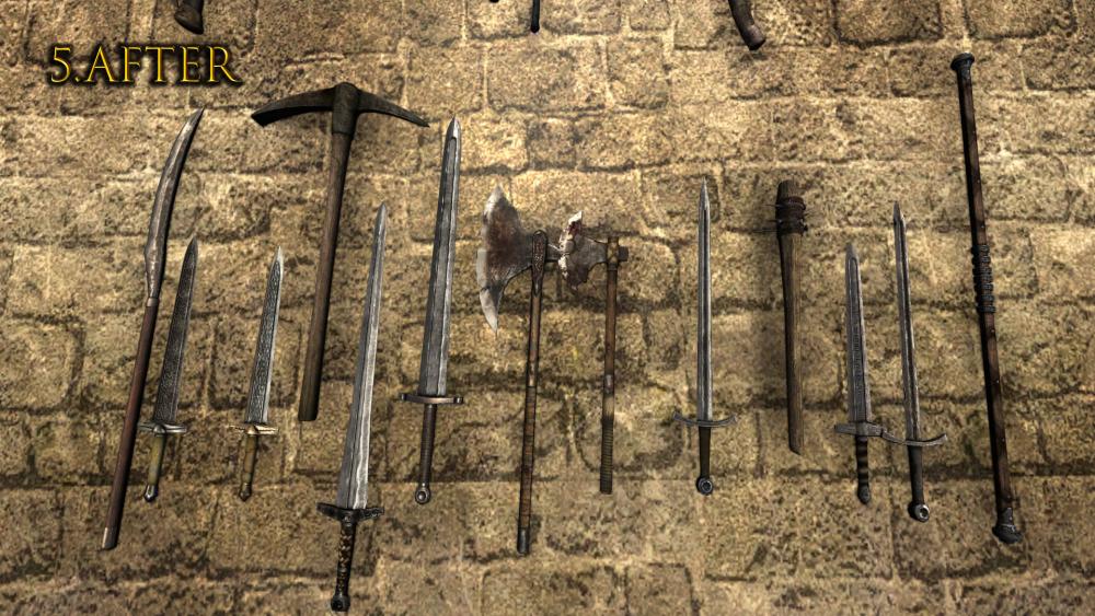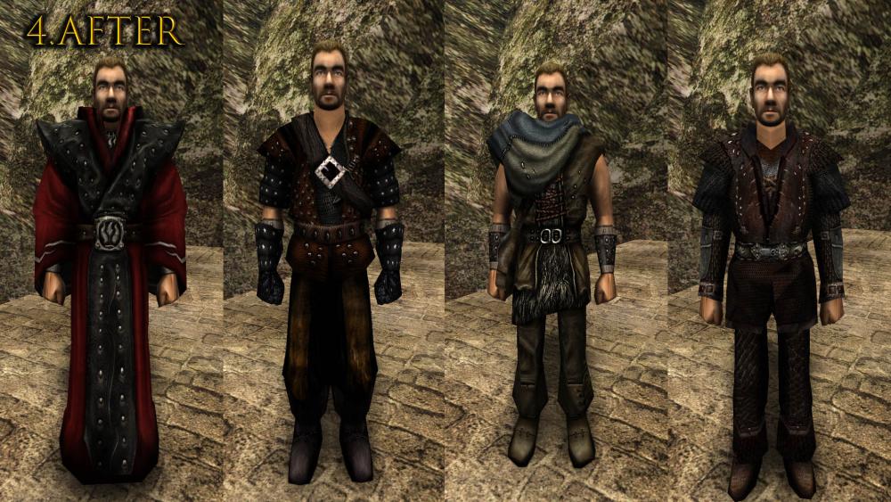 Этот мод заменяет большинство брони (32 штуки), базовые шкурки (текстуры тела) и почти все оружие (111) кроме палки, она шикарна + стрелу и арбалетный болт).