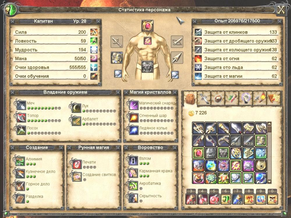 Второе прохождение. Играл магом, качал только магию, использовал в основном магический снаряд, выполнил большинство квестов. 23 часа.