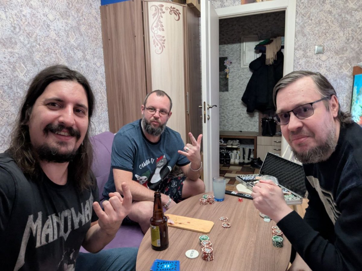 Мы собрались вчера в 17-00 с Джимом и Смерти и начали играть в покер. Маусет отпал заранее, а Аданос так и не доехал в итоге. Но мы и втроём сидели хорошо до 4 утра. Играли в покер по новой схеме для